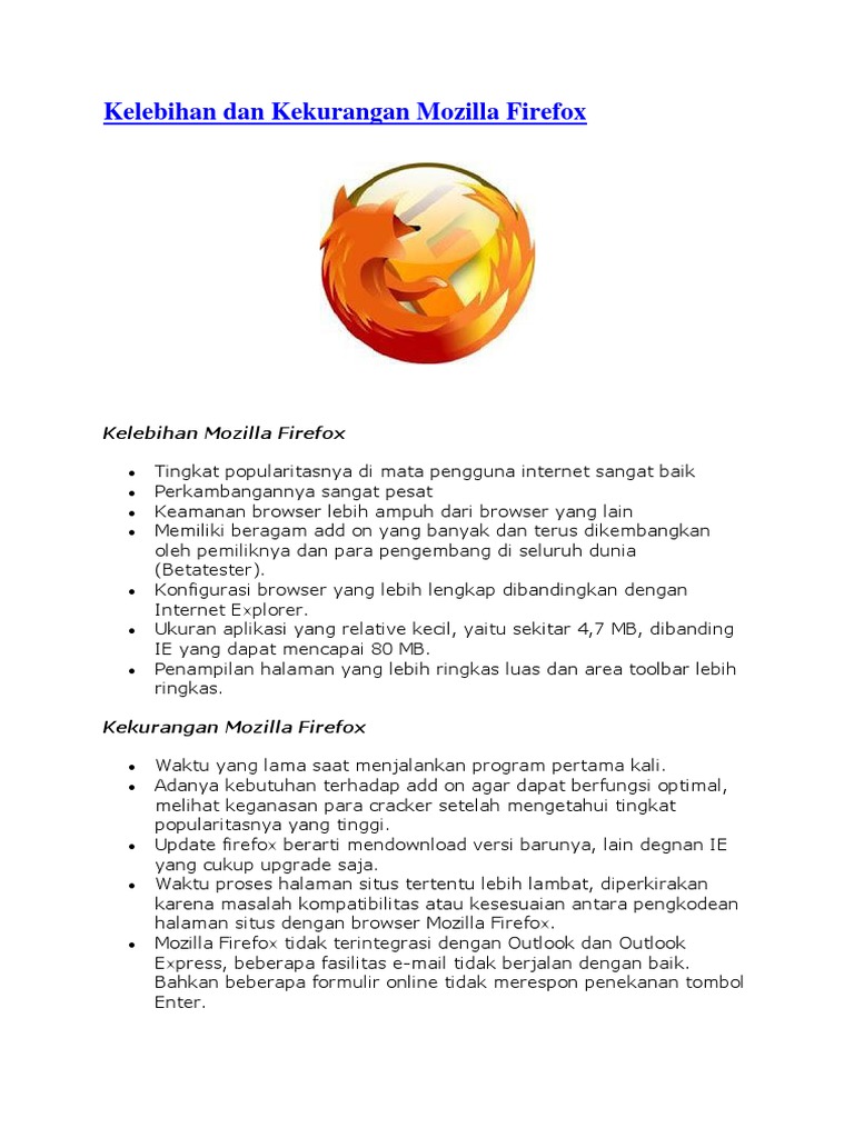 Kelebihan Dan Kekurangan Mozilla Firefox