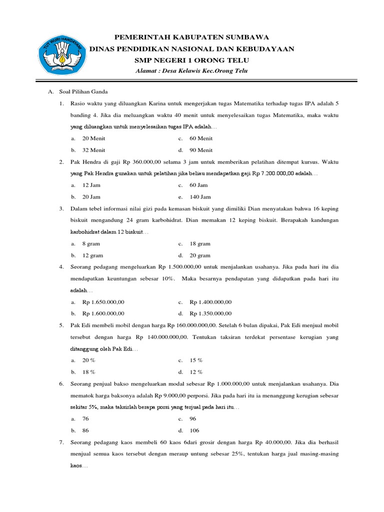 Kelas 7 Perbandingan Uji Kompetensi 5 Pg Youtube